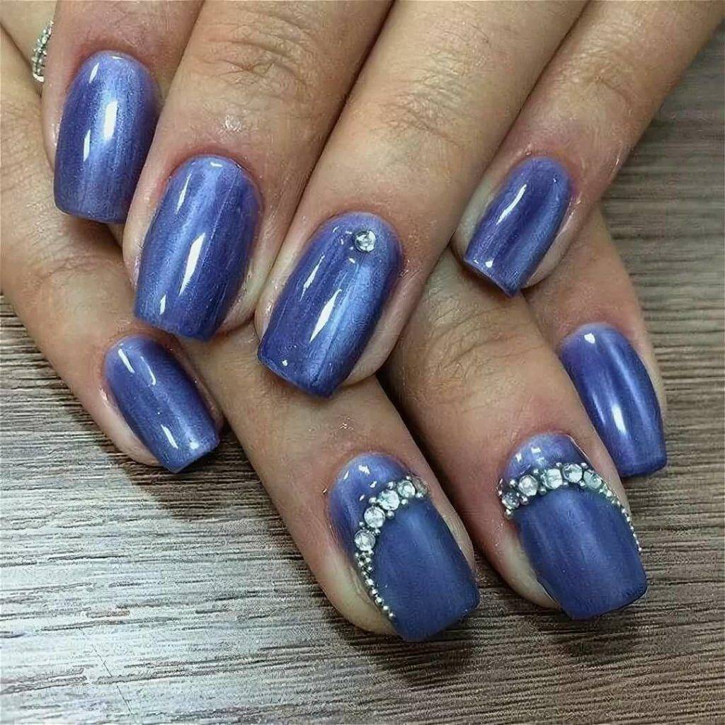 Отличный маникюр в синем цвете подойдет для любого сезона и события. Переливы добавят синему благородного вида и особого шарма. Особенно это касается темных оттенков. Синий маникюр любого оттенка, но с эффектом «кошачий глаз», отлично будет гармонировать с любым нарядом и украсит даже короткие ноготки. Эффектно смотрится и матовое однотонное покрытие без дизайна.