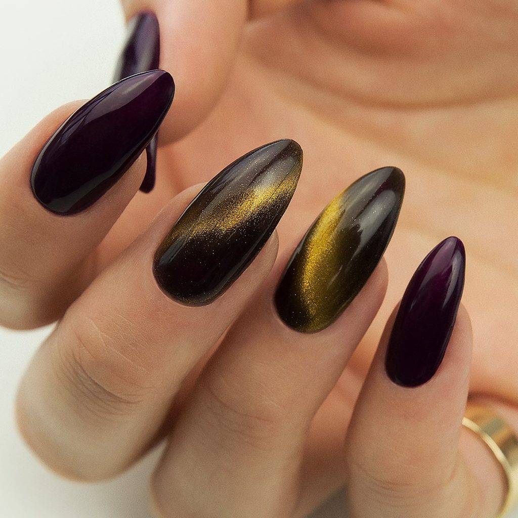 Если учитывать частоту использования темных оттенков на ноготках отечественных и зарубежных знаменитостей, то их нахождение в тренде становится очевидным. А присутствие в маникюре «кошачьего» перелива только подчеркнет намерения модницы выглядеть по всем требованиям тренда.