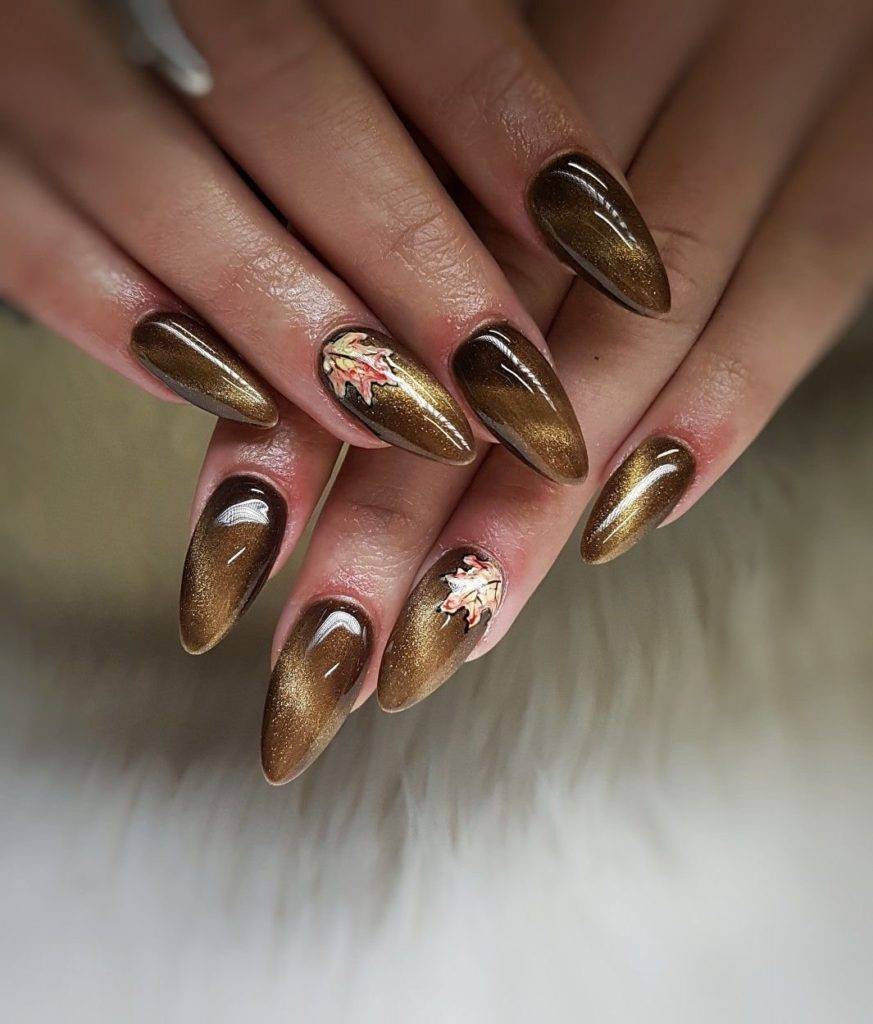 На фото приведен пример именно классического маникюра в этом стиле. Специальный магнит распределяет металлические частички так, что образуется интересный оттенок из одного базового цвета. Добиться такого же эффекта без магнита невозможно.