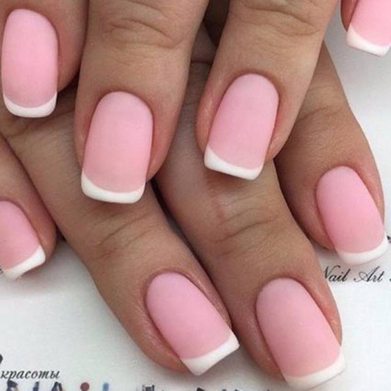Завершает нашу фотогалерею дизайн, который заслуживает отдельного внимания, – французский матовый маникюр. Самый популярный в мире маникюр френч получит новый виток развития благодаря уходу от глянца в сторону матовости. Матовый френч на ногтях выглядит шикарно, дизайн может быть выполнен в разных цветах, но самым популярным считается именно черный. Сочетание матового основания ногтя и глянцевой линии улыбки – пример эталонного дизайна в современном нейл-арте.