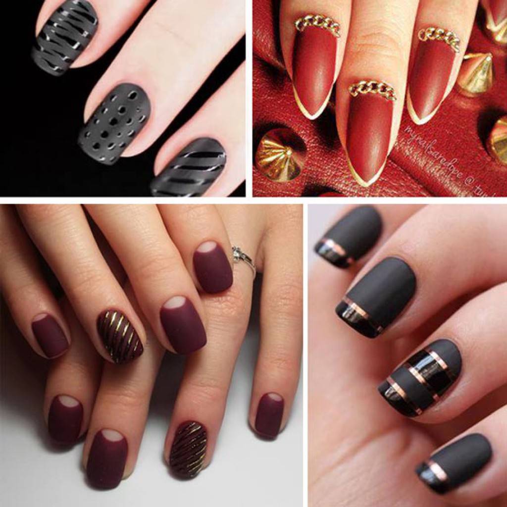 Чтобы сделать классный нейл-арт, нужно обладать определенными навыками при работе с матовыми покрытиями этих цветов. Что получится в результате, вы можете увидеть на фото.