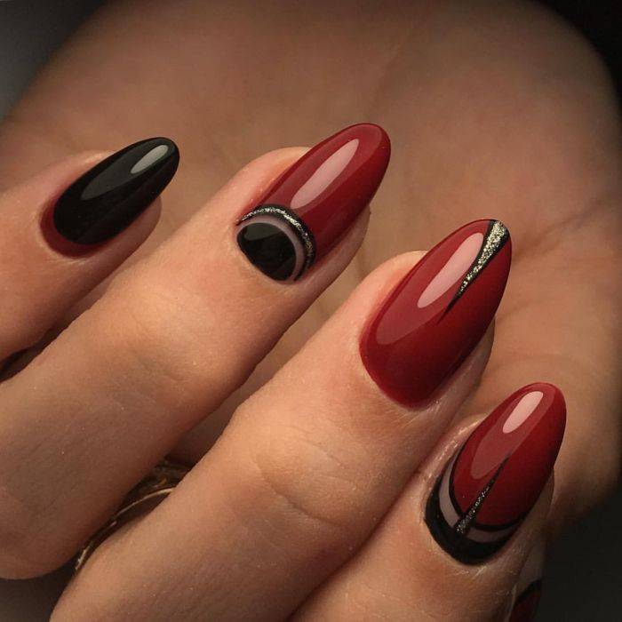 красный маникюр с золотым рисунком