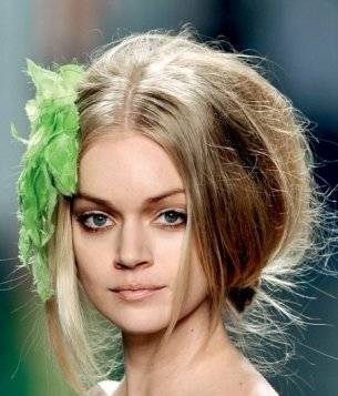 Для этого нужно всего лишь накрутить в районе макушки несколько прядей волос с помощью бигудей, затем начесать волосы в области корней, собрать все локоны в ракушку и подобрать кверху. Крепится такая прическа обычно с помощью воска и шпилек.
