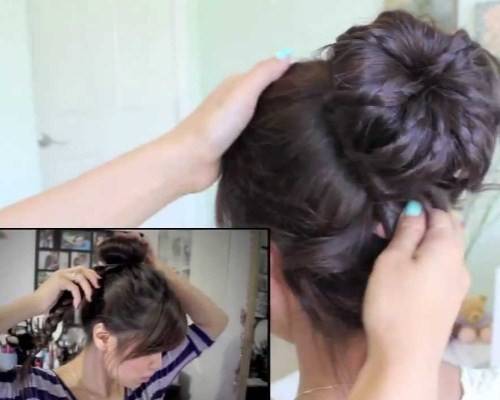 Как сделать пучок на короткие волосы? Немного сложнее, но все таки возможно. Если использовать дополнительные объемные резинки и аксессуары. Или можно прибегнуть к помощи шиньонов.