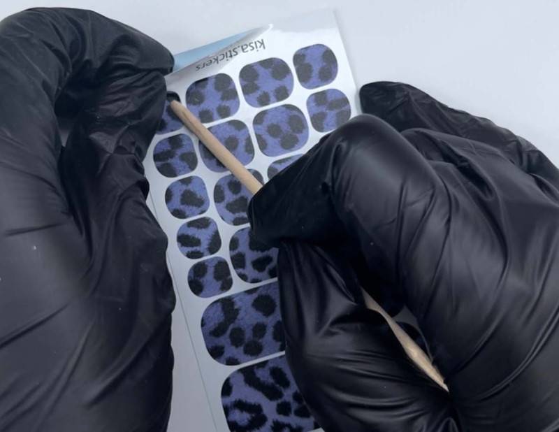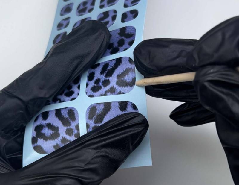 3. Нужно следить, чтобы вырезанные плёнки для ногтей остались на месте, для этого пальцем или апельсином палочкой помогите отделить прорезь.