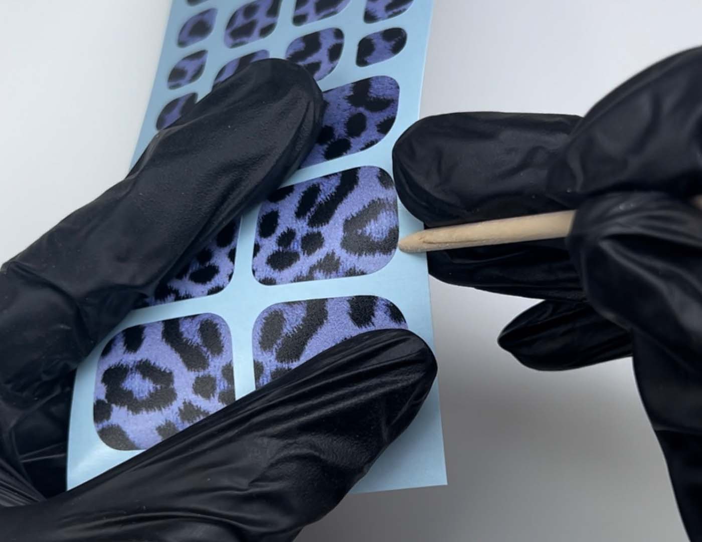 3. Нужно следить, чтобы вырезанные плёнки для ногтей остались на месте, для этого пальцем или апельсином палочкой помогите отделить прорезь.