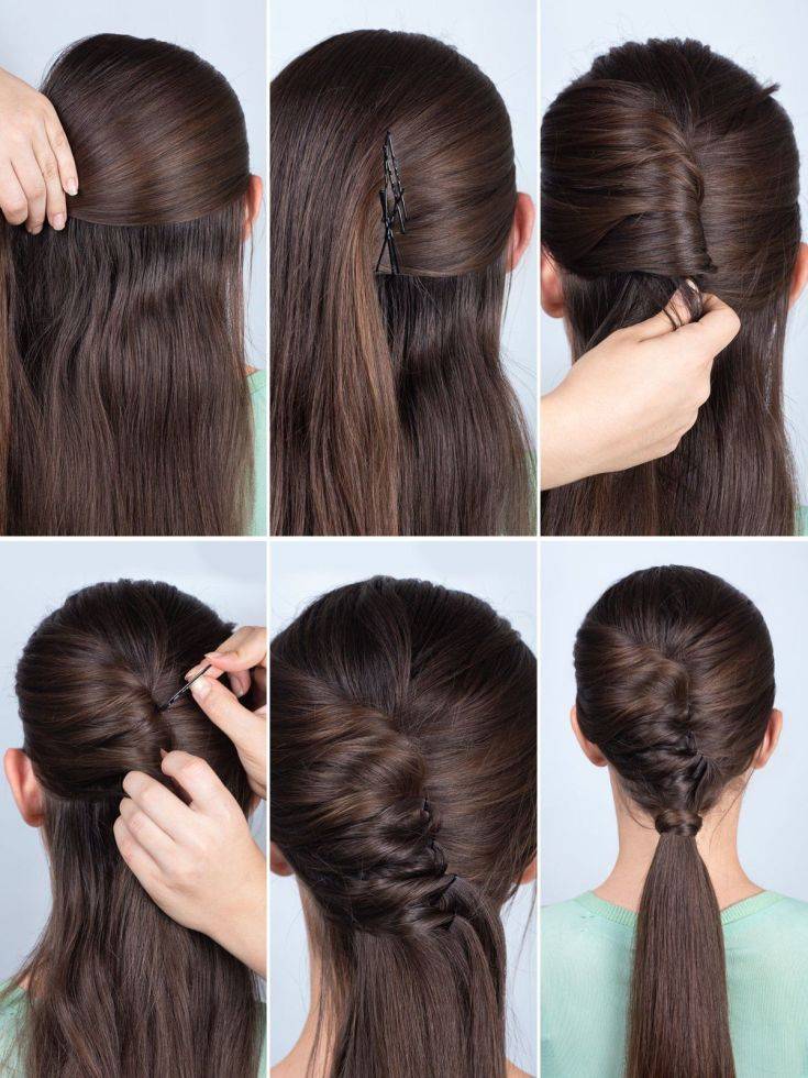 Согласитесь, наскоро причесаться и завязать хвостик махровой резинкой, совсем непривлекательно. Хотя, многие ответят, что с хвостиком удобно комфортно. С этим не поспоришь, только хвост нужно делать не обычный, а оригинальный и красивый. Достаточно внести незначительную деталь, и легкая быстрая прическа преобразится. Например, попробуйте следующий вариант. Подойдет для длинной и средней шевелюры.