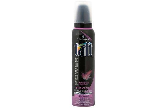 TAFT CLASSIC Пена Power «Нежность кашемира» для мегафиксации. Подходит для волос любого типа, обеспечивает стойкость, надежность укладки минимум 48 часов. Среди плюсов средства отмечают высокие термозащитные свойства. Стоимость — 280 рублей за 150 мл.