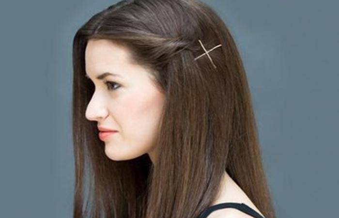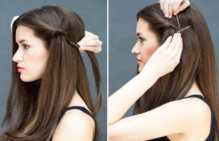 Для любительниц распущенных локонов предлагаем простой, но изысканный способ укладки. Вам потребуется несколько невидимок и 2 минуты свободного времени. Прядь у виска скрутите в жгут и зафиксируйте невидимками. Локоны с противоположного бока оставьте нетронутыми.