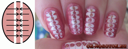 - Проставить 6 белых точек посередине ногтя;