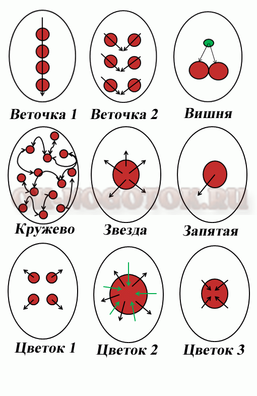Все рисунки на ногтях, для которых применяется иголка выполняются по основным схемам. Ниже я привожу основные схемы рисунков на ногтях иголкой.