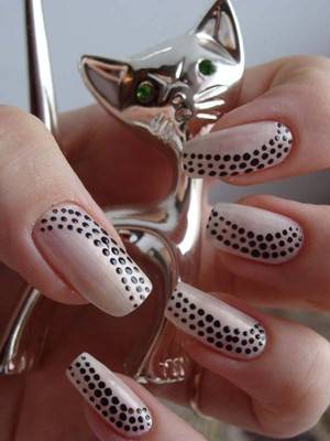 - Проставить 6 белых точек посередине ногтя;