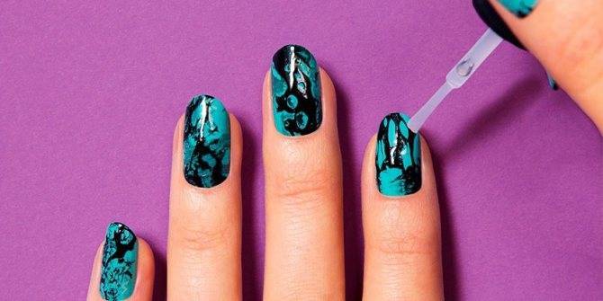 - Получив нужный узор, дождитесь полного высыхания покрытия и нанесите глянцевый закрепитель.