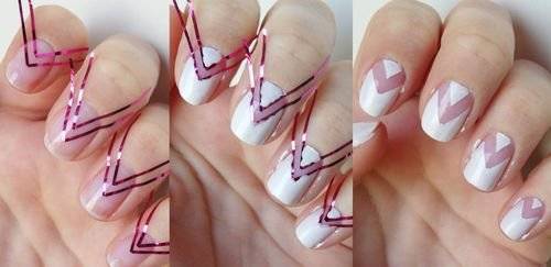- Приобретите трафареты в магазине или вырежьте полоски в форме буквы V из скотча.