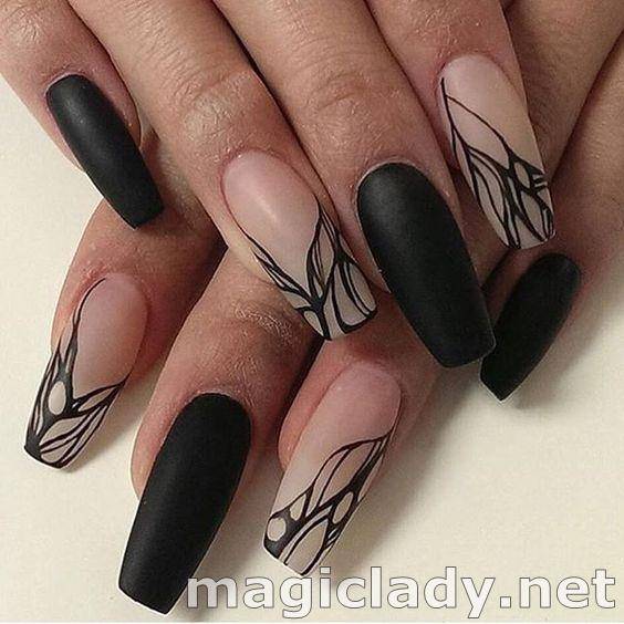 Наиболее практичным и удобным способом является выполнение маникюра с матовым лаком. Покрытие получается гладким и внешне напоминает бархат. Особым шиком отличается матовый лак для ногтей черного цвета. Чтобы сделать эффектный маникюр с черным матово-глянцевым дизайном, вам понадобятся: