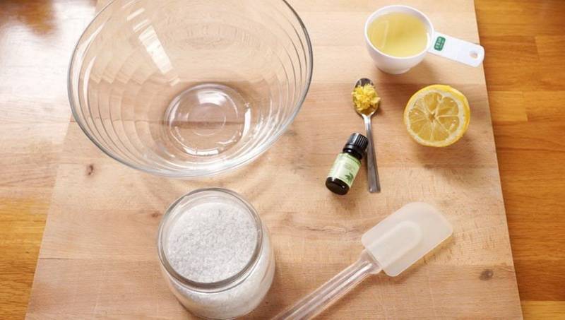 Чтобы приготовить тонизирующий скраб с морской солью, берутся следующие ингредиенты: