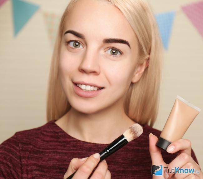- равномерно нанесите на дерму светлую тоналку и аккуратно растушуйте (для этого лучше пользоваться кисточкой с искусственными волосками),