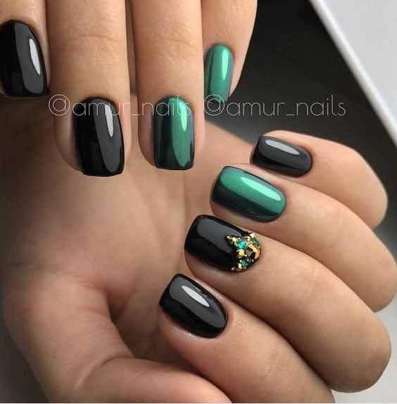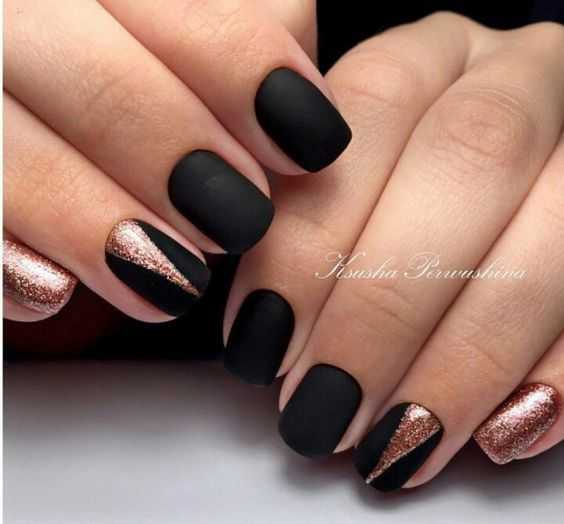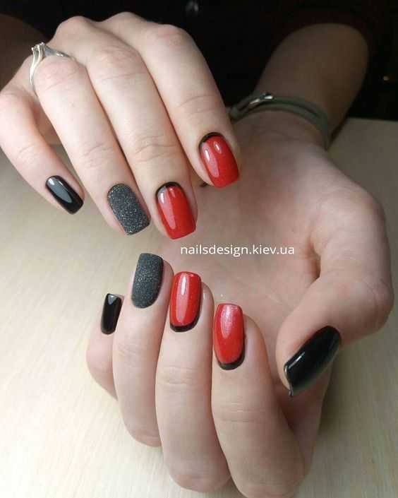 Для создания праздничного маникюра многие девушки выбирают черный цвет в качестве основного и золотистый. Его не обязательно использовать на всех ноготках, достаточно будет небольших акцентов. Дерзкий, но в то же время стильный дизайн получится, если комбинировать черный с красным цветом. При желании можно попробовать и другие варианты сочетания, которые нравятся именно вам.
