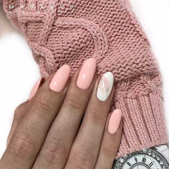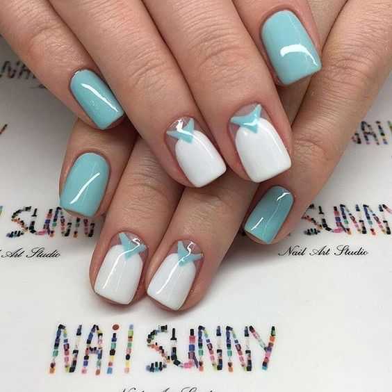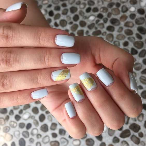 Белый маникюр на лето с акцентом
