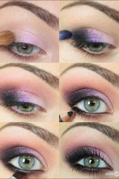 В данном варианте макияжа лиловые тени можно заменить на тени оливкового или сиреневого цвета.
