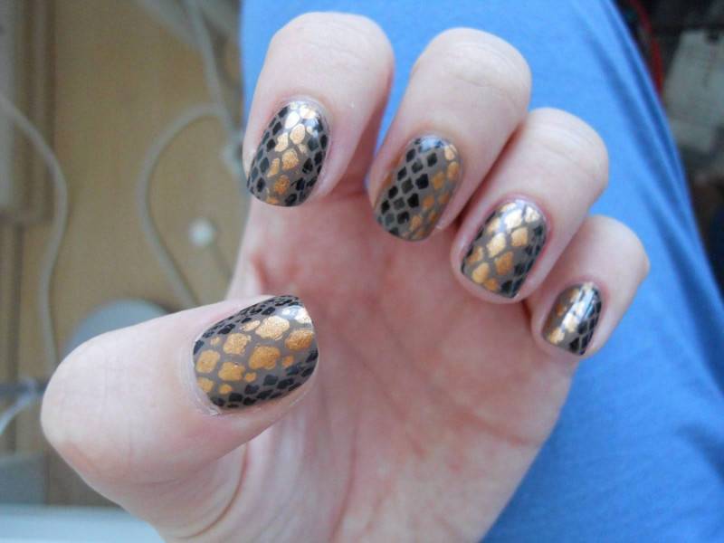 Также несложный вариант дизайна ногтей в виде змеиной шкуры.