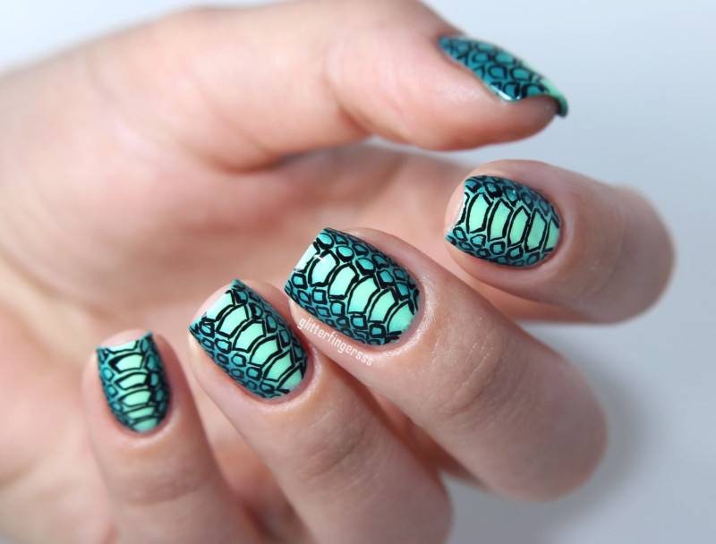 Это не единственный дизайн, в котором создается эффект кожи рептилии. Поняв, насколько просто его делать, вы сможете придумывать свои собственные варианты, создать неповторимый маникюр с яркой индивидуальностью
