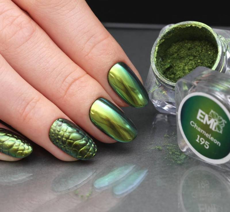 Современные материалы и техники позволяют нейл-мастерам создавать невероятно красивые и сложные оформления. Поэтому имитация кожи рептилии – вполне простой вариант дизайна. Для этого можно использовать уже готовые наклейки, которые остается только перенести на подготовленную ногтевую пластину. Также это может быть специальная сеточка, фольга или же стемпинг. Все эти средства помогают достичь натурального эффекта, который точно не останется без внимания.
