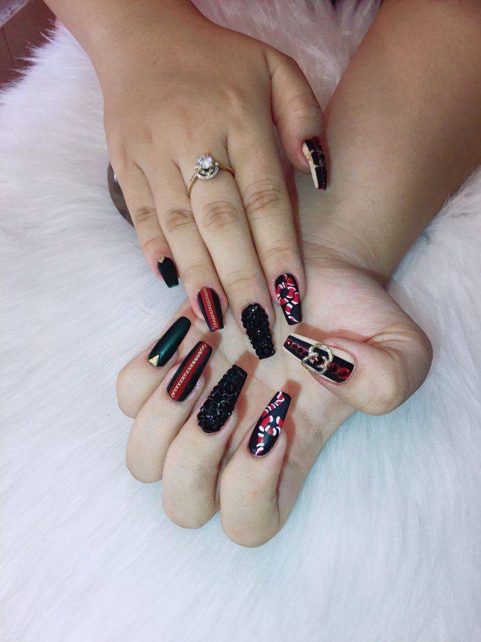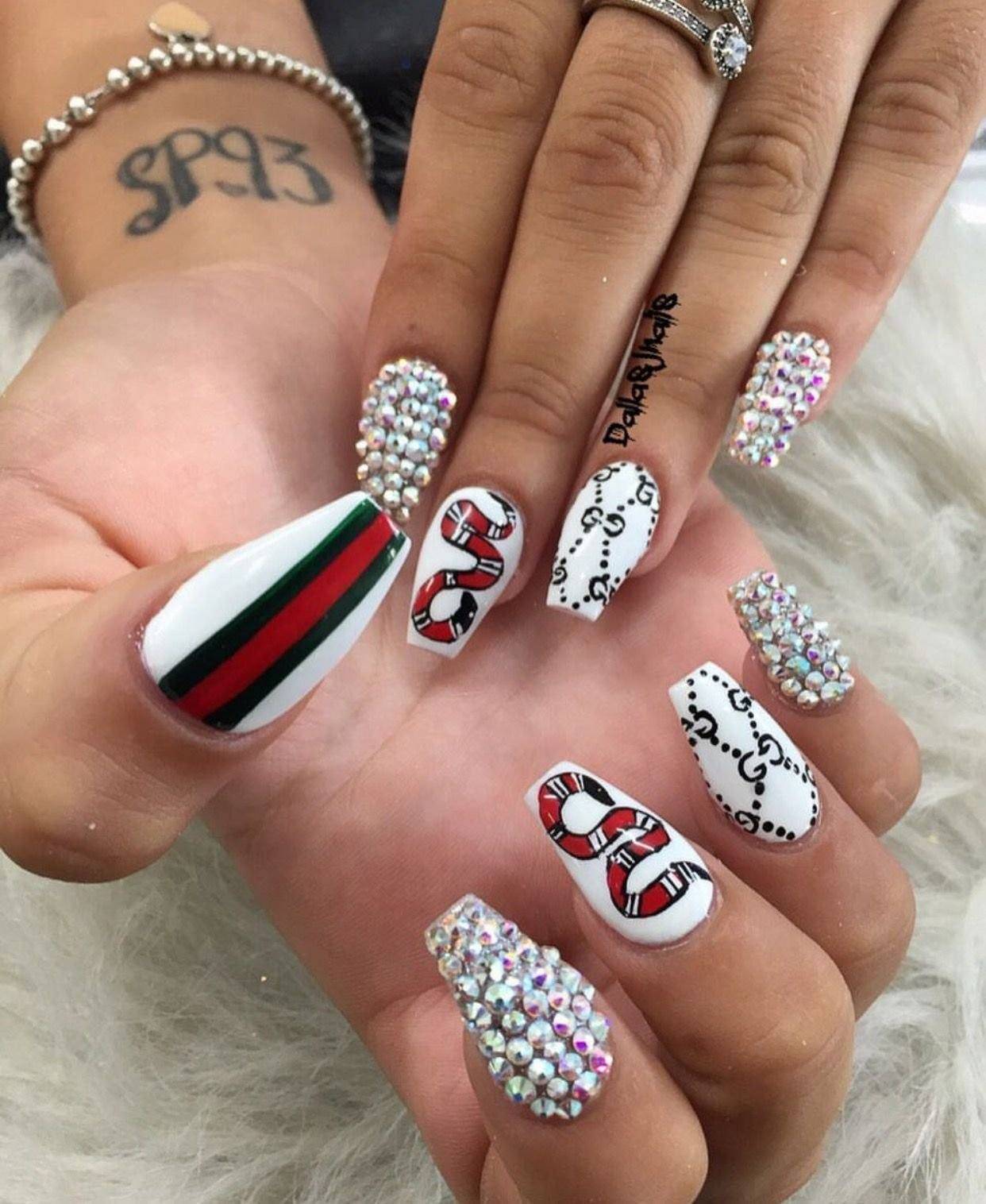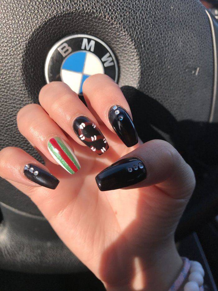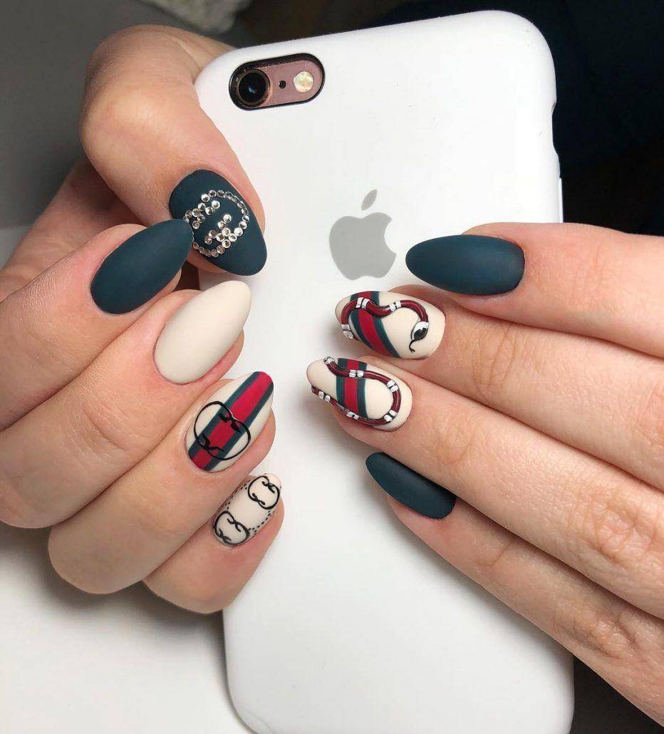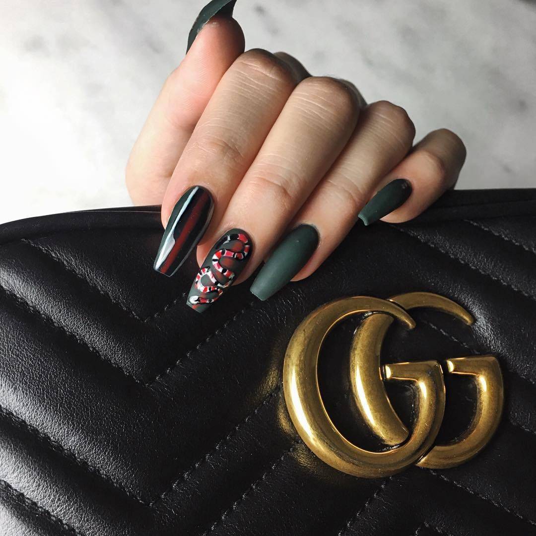 Также на длинных ногтях очень важно выполнить модный и стильный дизайн в стиле Gucci