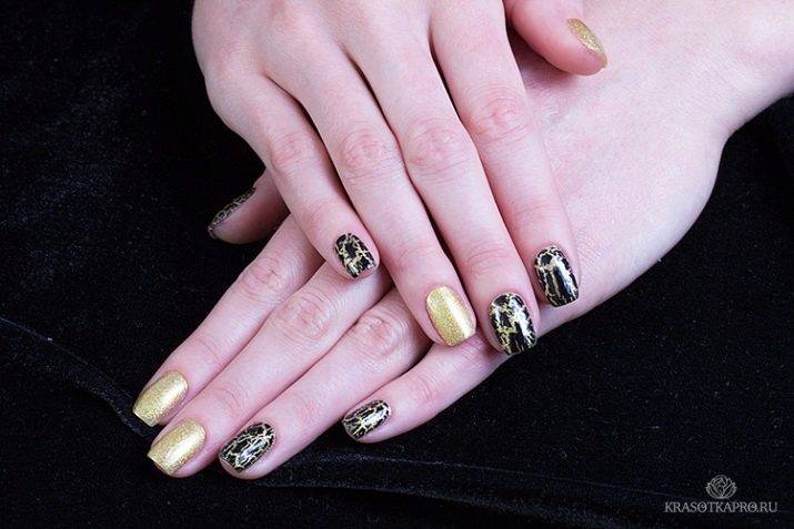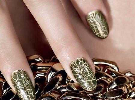 Есть один из самых простых способов создания дизайна ногтей с видом змеиной чешуи с помощью техники кракелюра. Для этого берут лак со специальным эффектом растрескивания и наносят на ногтевую пластину.