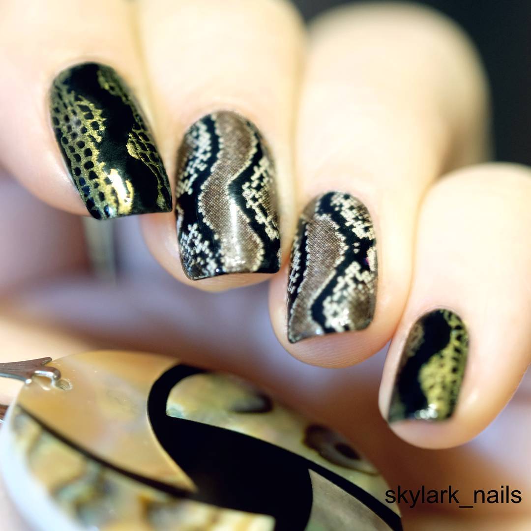 Благодаря современным материалам мастера маникюра имеют возможность создавать на ногтях просто настоящие произведения искусства, и без особого труда выполнять дизайн, максимально имитирующий кожу рептилий. Для таких целей используется ряд готовых наклеек, стемпинг, элементы из фольги, губки и сетки. С помощью акрилового, гелевого или кракелюрного лака можно украсить ногти «настоящими» объемными чешуйками. А фишкой в змеином маникюре стал недавно появившийся метод украшения ногтевых пластин натуральной кожей этих существ, от которой они избавляются во время сезонной линьки. Кусочки натурального материала крепятся к ногтевым пластинам и фиксируются сверху прозрачным гель-лаком. Уникальный эффект естественности готов!