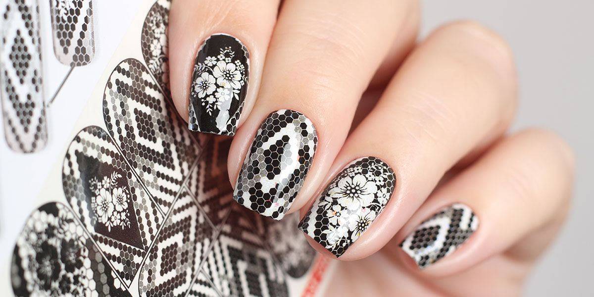 Специальные наклейки и искусственные накладки позволят создать подобный маникюр самостоятельно дома. Слайдеры наклеивают, строго придерживаясь инструкции. Если наклейка полностью прилегает к ногтю, то не требуются дополнительные закрепления. Маленький фрагмент на поверхности нуждается в выполнении всех этапов маникюра: создание базы, использование цветного лака, фиксирование закрепителем.