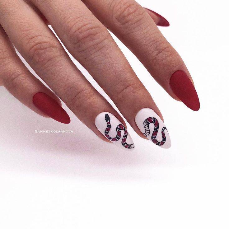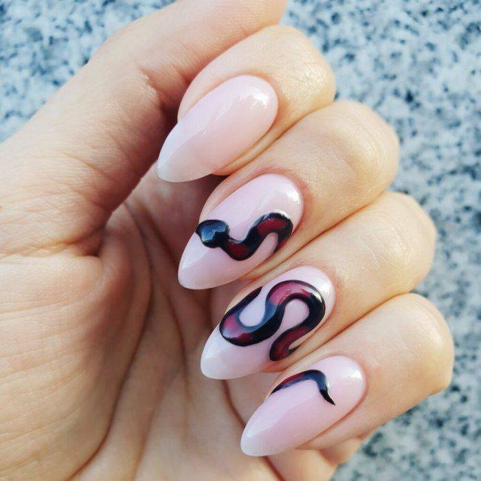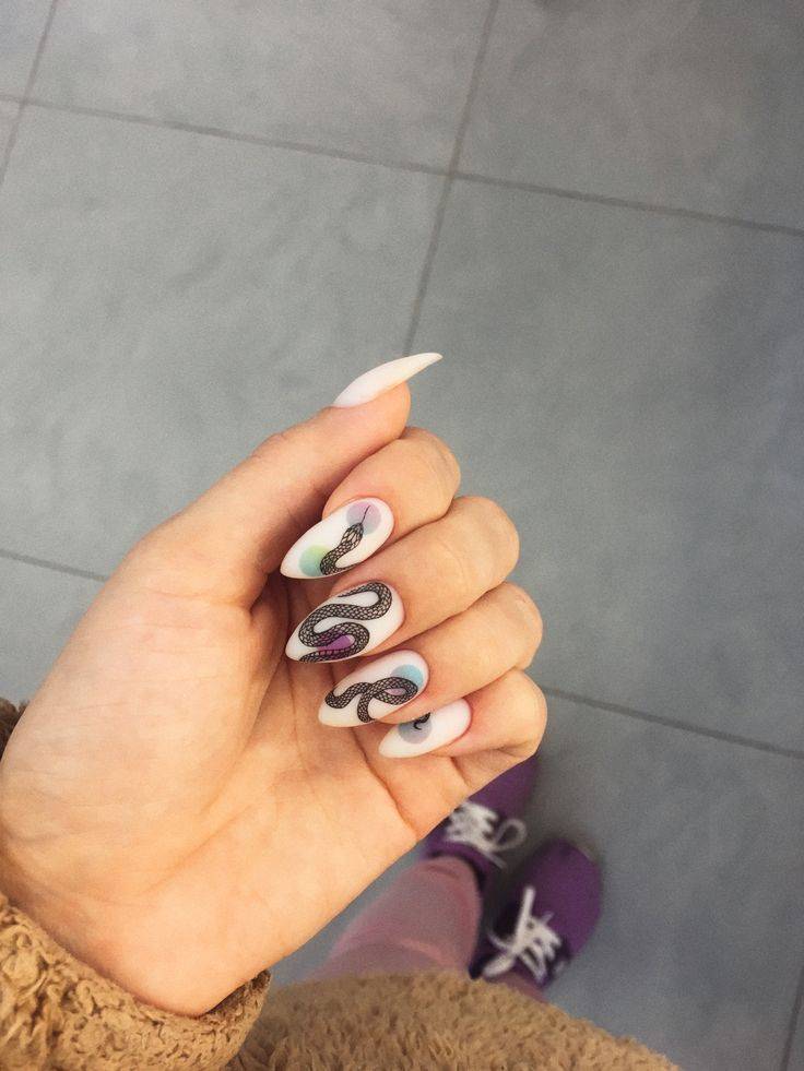 Вот далеко не все самые несложные в выполнении варианты змеиного дизайна ногтей.