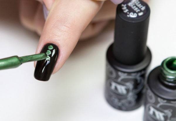 Этот способ идеально подойдет для девушек, умеющих хотя бы немного рисовать. Сложного абсолютно ничего нет — достаточно использовать маникюрный дотс либо кисть с тонким ворсом.