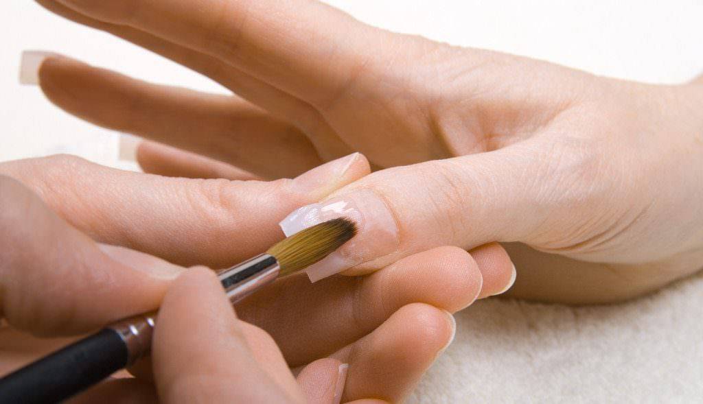 - клей, при помощи которого клеятся ногти токсичен и отрицательно сказывается на состоянии ногтевой пластины;