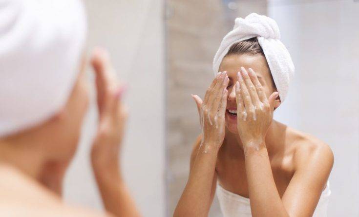 - Умывание водой или использование спрея для лица на основе мицеллярной воды