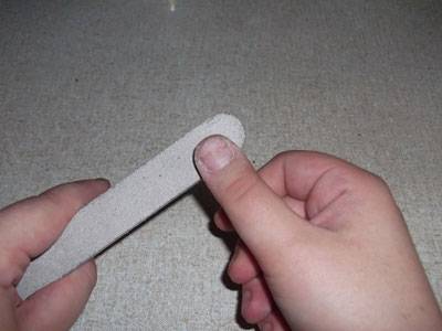 - Спиливаем сначала грубой пилочкой верхний слой, а затем работаем более щадящей пилкой.