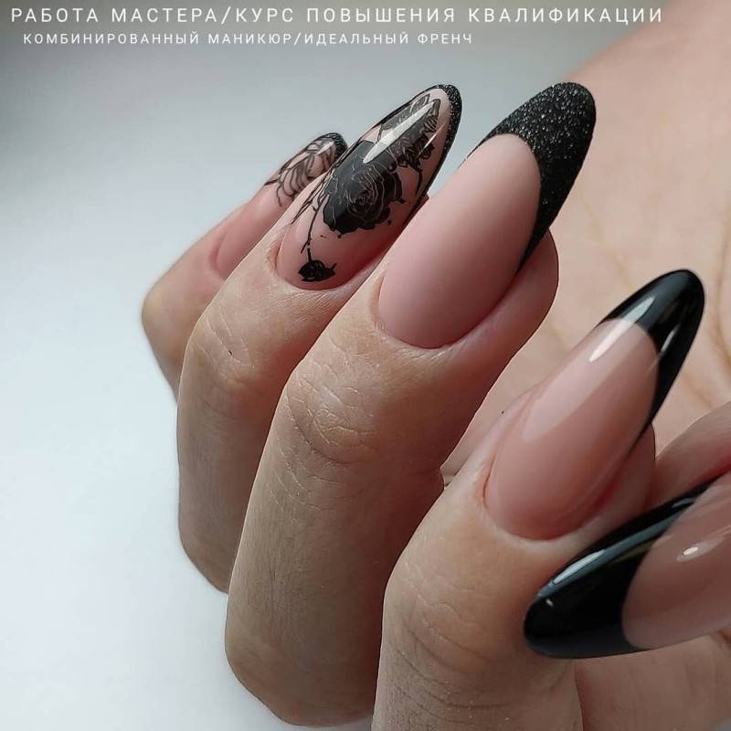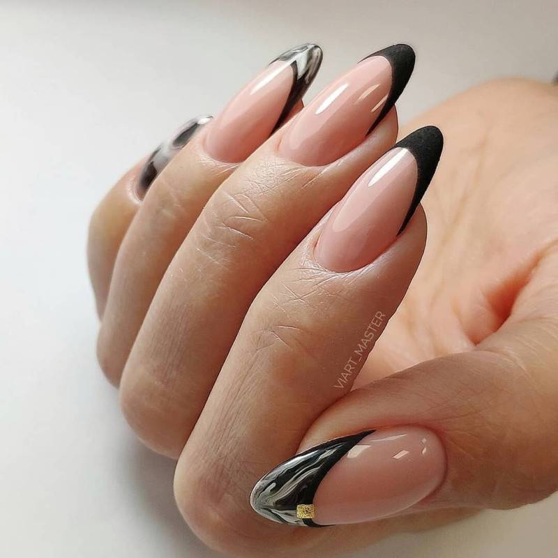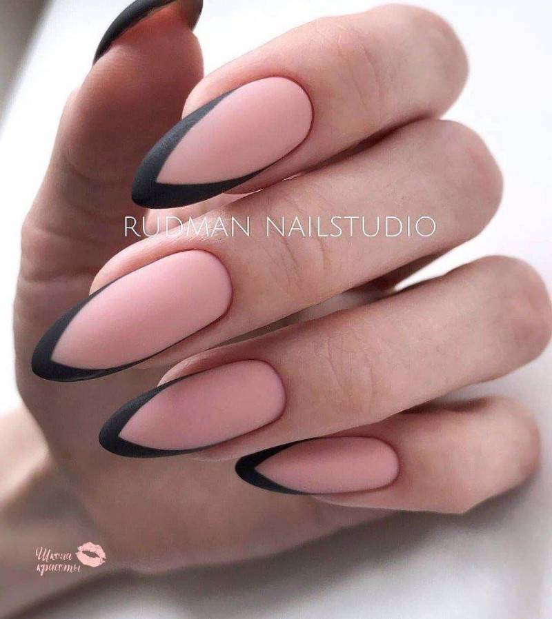 Черный френч на длинных ногтях: идеи выполнения 2023-2024 на любой форме