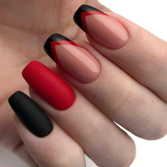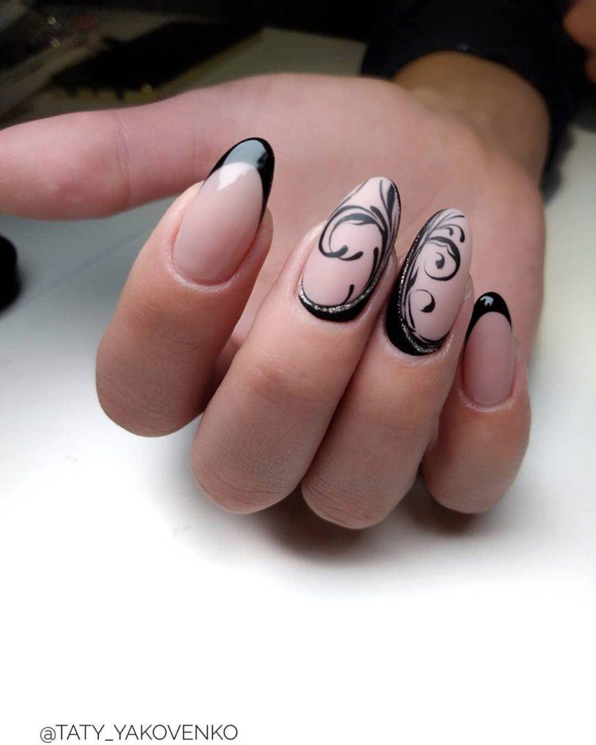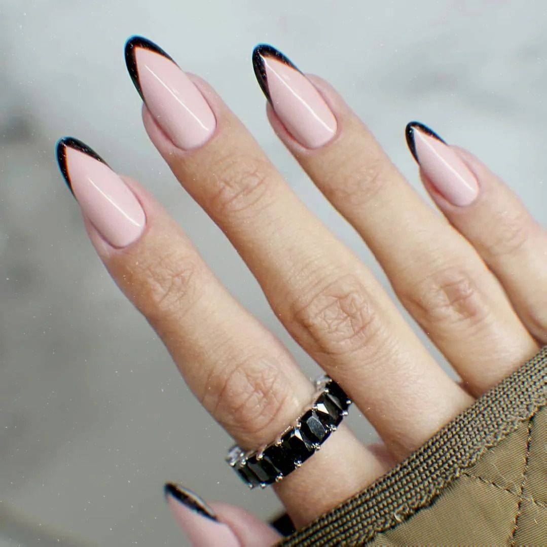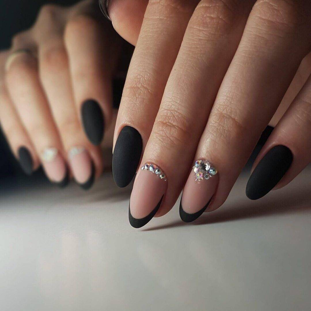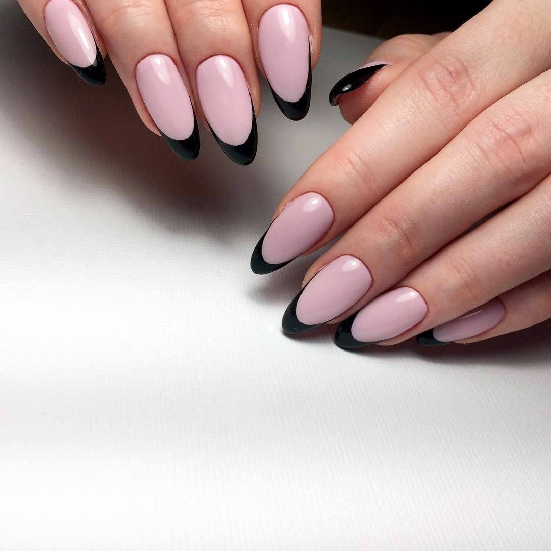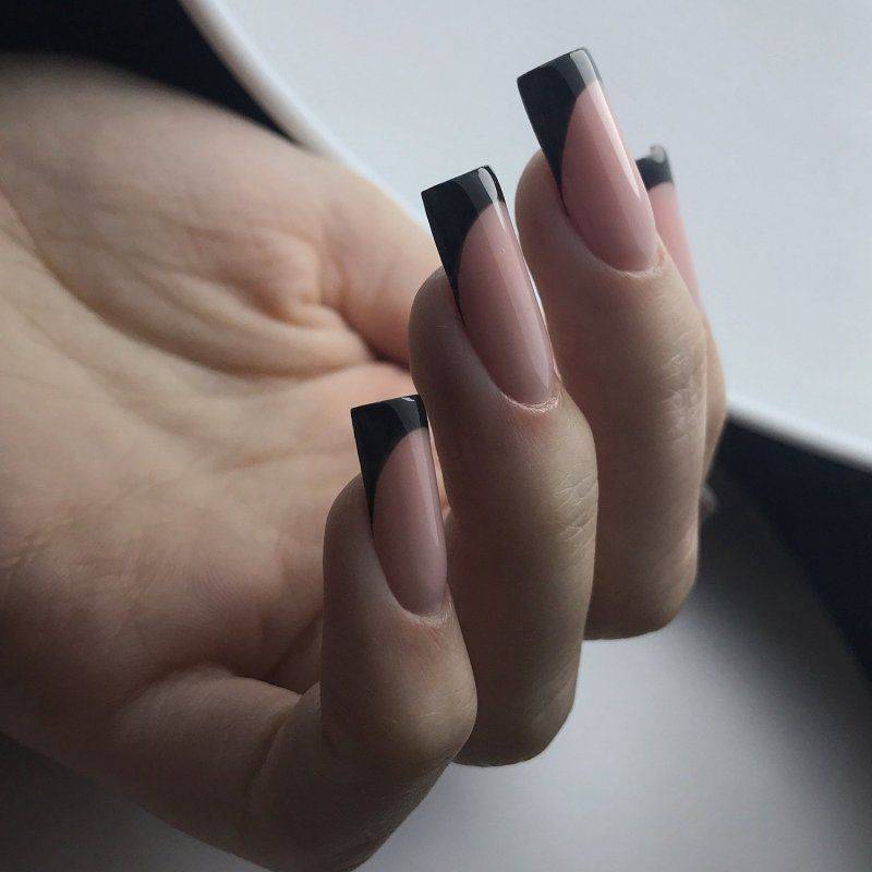 Черный френч на длинных ногтях: идеи выполнения 2023-2024 на любой форме