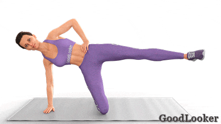 Примите положение боковой планки, но удерживайте вес тела с опорой на вытянутую руку и колено. Свободная рука зафиксирована на поясе, а свободная нога совершает основную работу. Она должна быть согнута в колене до прямого угла. В процессе начального подъема доведите бедро до параллели полу. После этого выпрямите ногу, сделайте секундную паузу, вновь согните ее и вернитесь в исходную фазу. Сделав нужное число повторений, смените стороны. Элемент поможет не только избавиться от ушек на бедрах, но также укрепить мышцы рук и боковые части корпуса, делая талию стройнее.