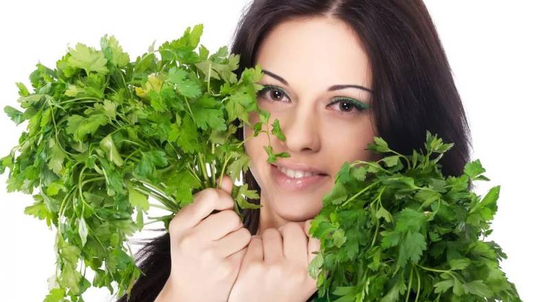 Входящая в состав зелень богата природными антиоксидантами и микроэлементами, которые стимулируют обновление клеток. Эфирные масла петрушки оказывают тонизирующий и омолаживающий эффект. Процедуры стоит делать ежедневно в течение 2 недель – положительные результаты появятся примерно через 1 неделю.