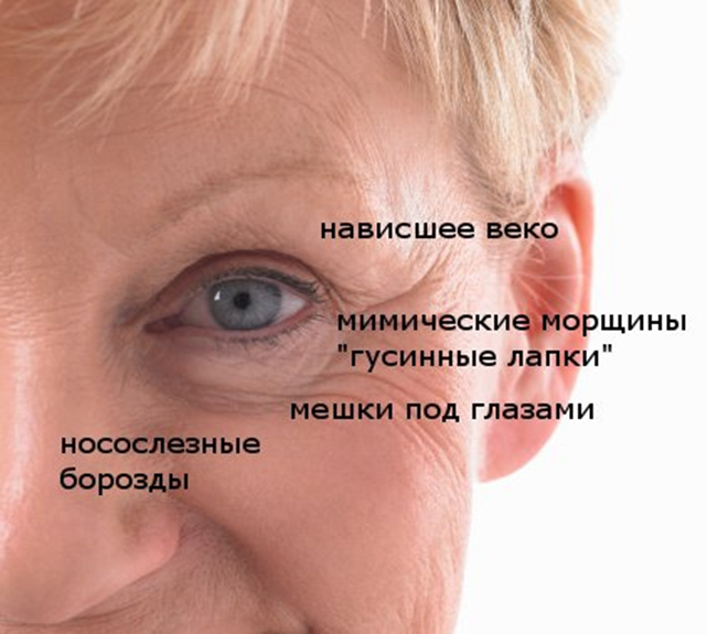 - Возрастные изменения: гравитационный птоз (смещение мягких тканей вниз), растяжение связок, ослабление мышцы глаза