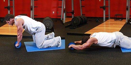 | Распрямление туловища на спортивном колесе | Не рекомендуется включать в тренировочную программу данное упражнение девушкам в первый месяц после родов и мужчинам и женщинам, имеющим очень слабые мышцы брюшного пресса. Техника выполнения: