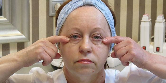 - На кожу закрытых глаз положите 3 пальца (указательный, средний, безымянный), немного надавите и делайте ими мягкие круговые движения. Повторите по 9 раз в разные стороны.