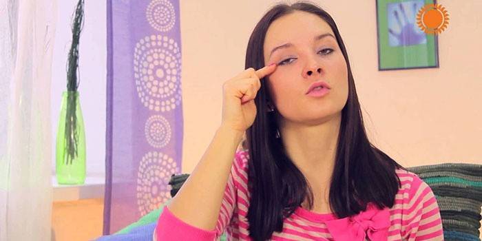- При помощи подушечек пальцев, лёгкими прикосновениями массировать верхнее веко от виска к переносице.