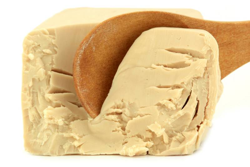 - Для дрожжевой маски предпочтение лучше отдать живым дрожжам. Разводим 100г в 0,5 стакана теплой воды или молока и даем побродить. Эту массу наносим на нижнюю челюсть и держим до полного высыхания (около 30 мин). Смываем водой.