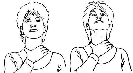 Одной рукой придерживаем основание шеи, поднимаем голову вперед и тянемся языком к кончику носа 15 раз.