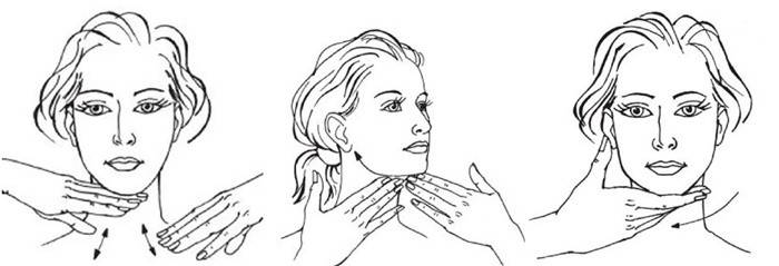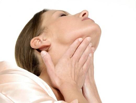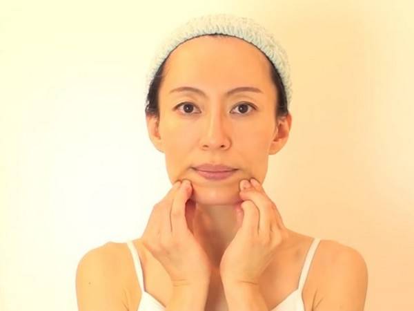 Первым делом на подбородок следует нанести специальный массажный крем, отвар из мёда или розовую воду. Совершайте разглаживающие движения по направлению от центральной части подбородка к ушам, наращивая темп. Далее следует мягко простукать поверхность кожи подушечками пальцев по тем же массажным линиям.