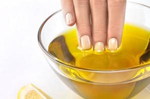 - Оливковое масло и лимон. Готовится смесь из подогретого на водяной бане первого компонента с последующим добавлением сока второго. Смазывайте ногти на ночь для восстановления цвета.
