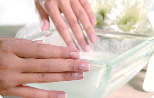 - солевая ванночка для восстановления ногтей с добавлением морской соли – лечит ослабленные ногти, препятствует возникновению грибковых и инфекционных поражений. Ванночки рекомендуется делать ежедневно, длительность процедуры – 10-15 минут.