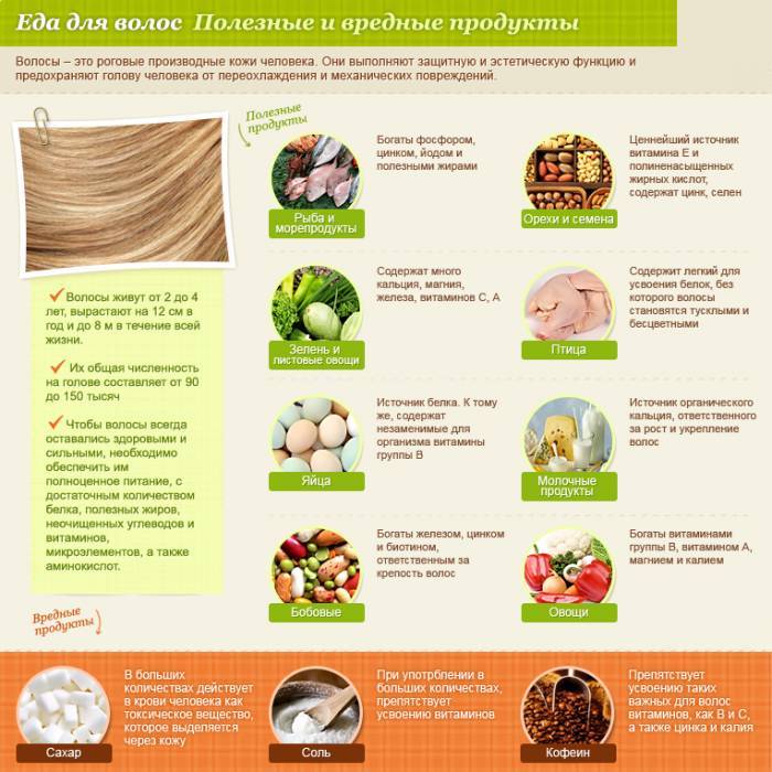 Чтобы сделать тонкие волосы более густыми, 3–4 раза в неделю ешьте продукты:
